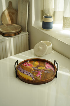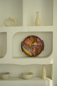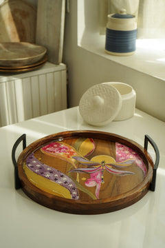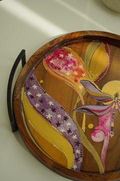 This is the "Enchanted Dragonfly Tray" – an exquisite hand-painted premium wood tray that combines vibrant beauty with artistic craftsmanship. Featuring a striking dragonfly design adorned with bright and bold colors, this tray captures the essence of transformation and joy. The intricate detailing and vivid hues bring the dragonfly to life, making it a stunning centrepiece for your serving collection. Perfect for entertaining guests or as a decorative accent, the "Radiant Dragonfly Tray" adds a touch of elegance and natural charm to any setting. Let this unique and colorful piece enhance your home with its radiant beauty and symbolic grace.