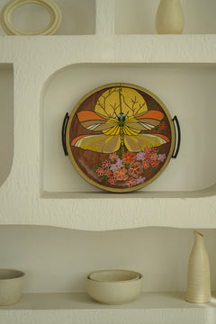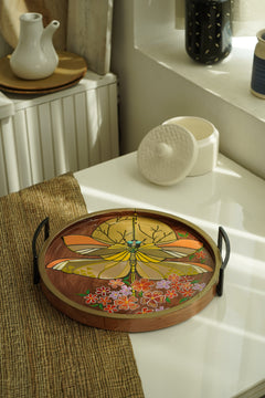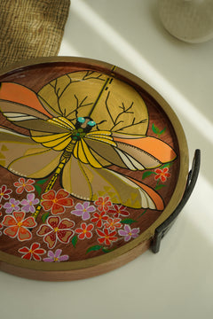 Presenting the "Dragonfly Delight Tray" – a captivating hand-painted premium wood tray that combines functionality with artistic elegance. This tray features a stunning dragonfly design, meticulously painted to showcase vibrant colors and intricate details. The dragonfly, a symbol of courage, strength, happiness, transformation, and spiritual growth, is complemented by a backdrop of beautiful blossoms, adding a touch of nature's charm to your serving experience. Perfect for serving guests or as a decorative piece, the "Dragonfly Delight Tray" brings a sense of serenity and sophistication to any setting. Elevate your hosting and home décor with this unique and chic piece that celebrates the harmony and beauty of nature.