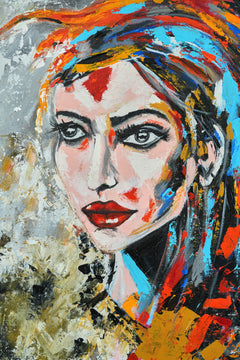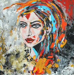 The painting bursts with vibrancy, capturing a woman who embodies strength, grace, and unshakable confidence. Her presence commands the canvas—fearless yet effortlessly beautiful, she seems to hold the world within her gaze. Bold strokes and radiant hues swirl around her, creating an aura of energy and resilience, as if the colors themselves bow to her spirit. Every detail—whether in the sharpness of her eyes, the poise of her stance, or the flow of her form—tells a story of courage and individuality. This is not just a portrait of a woman; it is a celebration of feminine power, a timeless reminder that beauty lies not only in form but in fearlessness.