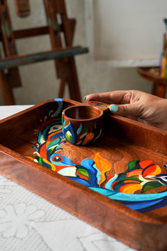 The smooth wooden finish, paired with vibrant hand-painted motifs, adds a touch of artistry to its functionality. Sturdy yet elegant, it’s ideal for casual evenings, festive gatherings, or special occasions where presentation matters as much as taste.