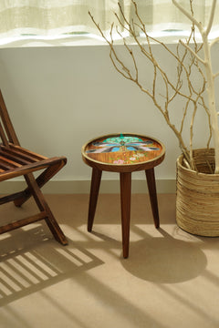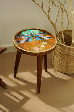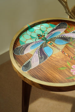 Introducing the "Dragonfly Reverie Table in Azure" – part of our exclusive hand-painted premium wood collection. Featuring a mesmerizing blue dragonfly design, this table symbolises courage, strength, happiness, transformation, and spiritual growth. The vibrant azure hues bring a refreshing and calming energy to any room, while the intricate details highlight the grace and elegance of the dragonfly. Elevate your home décor with this artistic and chic piece, designed to inspire and captivate. Let the "Dragonfly Reverie Table in Azure" be a source of serenity and beauty in your living space.