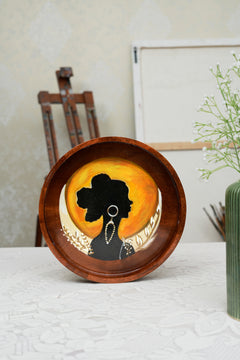 Elevate your home décor with this striking hand-painted Urban Wooden Tray, featuring a unique portrayal of a woman in a blend of tribal and urban abstract styles. Each brushstroke captures the rich textures and patterns of tribal artistry, making every tray a one-of-a-kind statement piece.