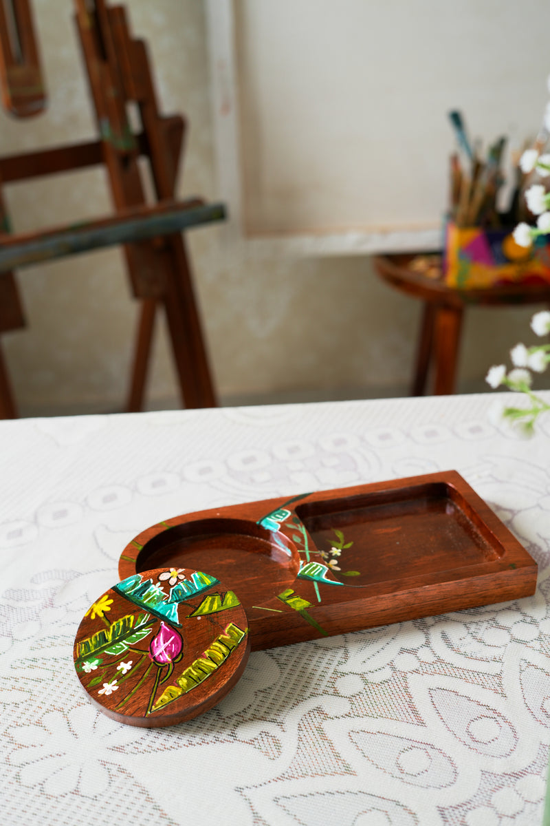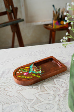 The natural wooden finish paired with vibrant, hand-painted detailing adds a rustic yet contemporary charm to your table. Lightweight yet sturdy, it’s ideal for everyday use, cozy evenings, or even as a thoughtful gifting piece for coffee and art lovers alike.